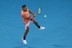 MELBOURNE, AUSTRALIA - JANUARY 27: Nick Kyrgios of Australia plays a backhand in his Men's Singles fourth round match against Rafael Nadal of Spain on day eight of the 2020 Australian Open at Melbourne Park on January 27, 2020 in Melbourne, Australia. (Photo by Cameron Spencer/Getty Images)