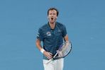 SYDNEY, AUSTRALIA - JANUARY 09: Daniil Medvedev of Russia celebrates winning set point during his quarter final singles match against Diego Schwartzman of Argentina during day seven of the 2020 ATP Cup at Ken Rosewall Arena on January 09, 2020 in Sydney, Australia. (Photo by Mark Metcalfe/Getty Images)