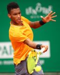 MONTE-CARLO, MONACO - APRIL 16: Felix Auger-Aliassime of Canada plays a forehand against Juan Ignacio Londero of Argentina in their first round match during day 3 of the Rolex Monte-Carlo Masters at Monte-Carlo Country Club on April 16, 2019 in Monte-Carlo, Monaco. (Photo by Clive Brunskill/Getty Images)