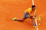 • ROME, ITALY - MAY 13: Felix Auger-Aliassime of Canada hits a backhand during his first round match agains Borna Coric of Croatia during day two of the International BNL d'Italia at Foro Italico on May 13, 2019 in Rome, Italy. (Photo by Adam Pretty/Getty Images)