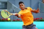 MADRID, SPAIN - MAY 05: Felix Auger-Aliassime of Canada plays a forehand against Denis Shapovalov of Canada during day two of the Mutua Madrid Open at La Caja Magica on May 05, 2019 in Madrid, Spain. (Photo by Julian Finney/Getty Images)
