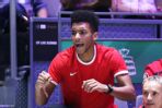 MADRID, SPAIN - NOVEMBER 21: Felix Auger-Aliassime of Canada celebrates his team winning a point in the quarter final doubles match between Australia and Canada during Day Four of the 2019 Davis Cup at La Caja Magica on November 21, 2019 in Madrid, Spain. (Photo by Alex Pantling/Getty Images)