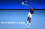 BRISBANE, AUSTRALIA - JANUARY 03: Felix Auger-Aliassime of Canada serves against Michail Pervolarakis of Greece during day one of the 2020 ATP Cup Group Stage at Pat Rafter Arena on January 03, 2020 in Brisbane, Australia. (Photo by Bradley Kanaris/Getty Images)