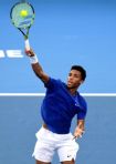 BRISBANE, AUSTRALIA - JANUARY 03: Felix Auger-Aliassime of Canada plays a volley against Michail Pervolarakis of Greece during day one of the 2020 ATP Cup Group Stage at Pat Rafter Arena on January 03, 2020 in Brisbane, Australia. (Photo by Bradley Kanaris/Getty Images)