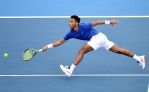 BRISBANE, AUSTRALIA - JANUARY 03: Felix Auger-Aliassime of Canada stretches out to play forehand a shot against Michail Pervolarakis of Greece during day one of the 2020 ATP Cup Group Stage at Pat Rafter Arena on January 03, 2020 in Brisbane, Australia. (Photo by Bradley Kanaris/Getty Images)