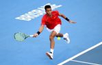 BRISBANE, AUSTRALIA - JANUARY 05: Felix Auger-Aliassime of Canada stretches out to play a forehand in his match against John Millman of Australia during day three of the 2020 ATP Cup Group Stage at Pat Rafter Arena on January 05, 2020 in Brisbane, Australia. (Photo by Bradley Kanaris/Getty Images)