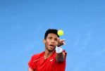 BRISBANE, AUSTRALIA - JANUARY 07: Felix Auger-Aliassime of Canada serves in his match against Jan-Lennard Struff of Germany during day five of the ATP Cup Group Stage at Pat Rafter Arena on January 07, 2020 in Brisbane, Australia. (Photo by Bradley Kanaris/Getty Images)
