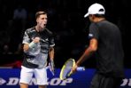 LONDON, ENGLAND - NOVEMBER 14: Joe Salisbury of Great Britain, playing partner of Rajeev Ram of the USA celebrates in their doubles match against Marcelo Melo of Brazil and Lukasz Kubot of Poland during Day Five of the Nitto ATP World Tour Finals at The O2 Arena on November 14, 2019 in London, England. (Photo by Alex Burstow/Getty Images)