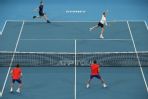 SYDNEY, AUSTRALIA - JANUARY 07: Jamie Murray and Joe Salisbury of Great Britain play in their Group C doubles match against Radu Albot and Alexander Cozbinov of Moldova during day five of the 2020 Sydney International at Ken Rosewall Arena on January 07, 2020 in Sydney, Australia. (Photo by Matt King/Getty Images)