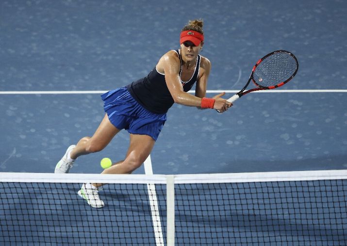 DUBAI, UNITED ARAB EMIRATES - FEBRUARY 15: Alize Cornet of France in action in her match against Kirsten Flipkens of Belguim during day one of the WTA Dubai Duty Free Tennis Championship at the Dubai Duty Free Stadium on February 15, 2015 in Dubai, United Arab Emirates. (Photo by Francois Nel/Getty Images)