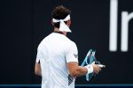 MELBOURNE, AUSTRALIA - JANUARY 20: Fabio Fognini of Italy picks up his racquet after smashing it during his Men's Singles first round match against Reilly Opelka of the United States of America on day one of the 2020 Australian Open at Melbourne Park on January 20, 2020 in Melbourne, Australia. (Photo by Daniel Pockett/Getty Images)