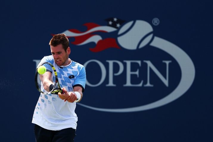 NEW YORK, NY - SEPTEMBER 01: Austin Krajicek of the United States returns a shot against Santiago Giraldo of Colombia during their Men's Singles First Round match on Day Two of the 2015 US Open at the USTA Billie Jean King National Tennis Center on September 1, 2015 in the Flushing neighborhood of the Queens borough of New York City. (Photo by Elsa/Getty Images)