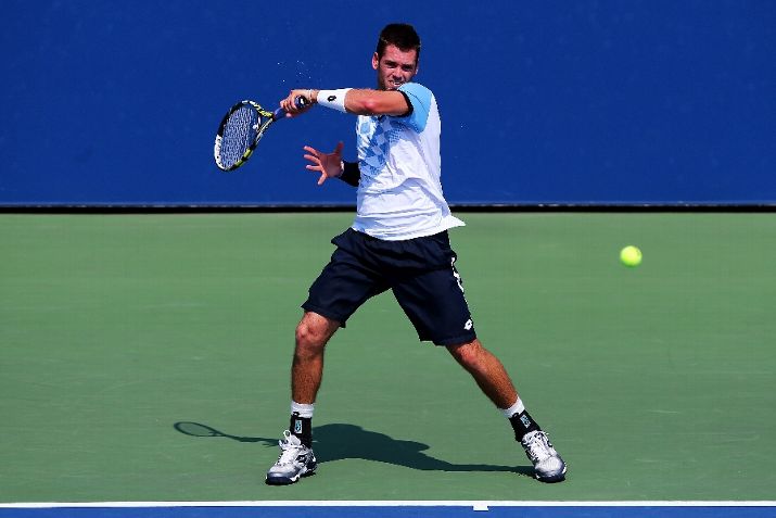 NEW YORK, NY - SEPTEMBER 01: Austin Krajicek of the United States returns a shot against Santiago Giraldo of Colombia during their Men's Singles First Round match on Day Two of the 2015 US Open at the USTA Billie Jean King National Tennis Center on September 1, 2015 in the Flushing neighborhood of the Queens borough of New York City. (Photo by Elsa/Getty Images)