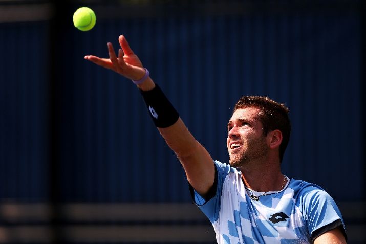 NEW YORK, NY - SEPTEMBER 01: Austin Krajicek of the United States serves against Santiago Giraldo of Colombia during their Men's Singles First Round match on Day Two of the 2015 US Open at the USTA Billie Jean King National Tennis Center on September 1, 2015 in the Flushing neighborhood of the Queens borough of New York City. (Photo by Elsa/Getty Images)