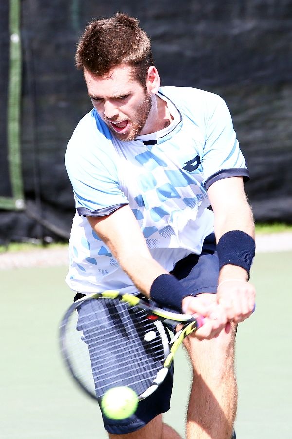 TOKYO, JAPAN - OCTOBER 06: Austin Krajicek of USA in action during the men's singles match against Matthew Ebden of Australia on day two of Rakuten Open 2015 at Ariake Colosseum on October 6, 2015 in Tokyo, Japan. (Photo by Koji Watanabe/Getty Images)
