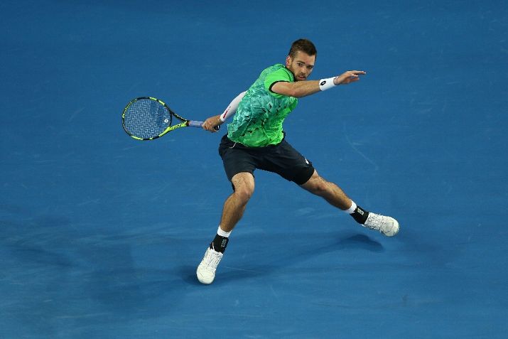 MELBOURNE, AUSTRALIA - JANUARY 20: Austin Krajicek of the United States follows through in his second round match against Kei Nishikori of Japan during day three of the 2016 Australian Open at Melbourne Park on January 20, 2016 in Melbourne, Australia. (Photo by Cameron Spencer/Getty Images)