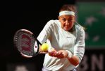ROME, ITALY - MAY 16: Petra Kvitova of the Czech Republic plays a backhand against Maria Sakkari of Greece in their third round match during day five of the International BNL d'Italia at Foro Italico on May 16, 2019 in Rome, Italy. (Photo by Clive Brunskill/Getty Images)