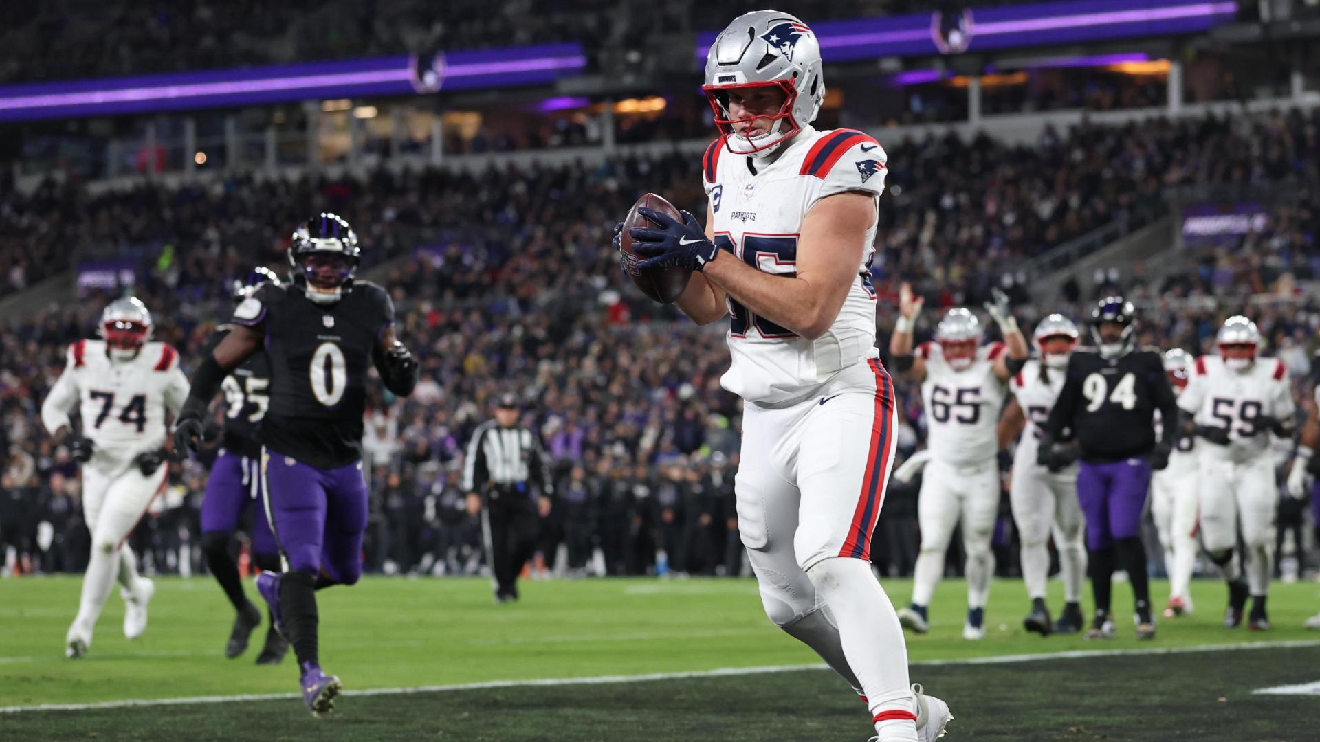 Drake Maye lofts it to Hunter Henry for a Pats TD