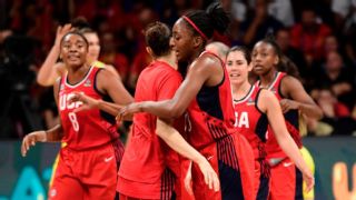SAN CRISTOBAL DE LA LAGUNA, Spain -- Sue Bird and Diana Taurasi shared a hug as the final seconds ran down on a third straight World Cup championship. The longtime USA Basketball teammates had accomplished another piece of history together. The pair has been a key part of all three titles and hasn't lost a World Cup game in nearly 12 years, including Sunday night's 73-56 win over Australia in the gold medal game. "It means a lot. I was saying yesterday in the press conference that there's this misconception out there that this is easy for us,'' Bird said. "I get it, because the scores can say that at times. But this isn't easy. We're thrown together and need to figure it out on the fly. We need to peak at the right time. It's extremely satisfying when we get it done.'' Bird now is the most decorated athlete in World Cup history, winning four gold medals and one bronze. "I don't know if I can put it in perspective because I'm still in it,'' Bird said. The victory gave the U.S. 10 World Cup gold medals and was the 22nd win in a row overall for the Americans dating back to the bronze medal game in 2006. That was the same year that Australia won its only World Cup title. The Americans lost to Russia in the semifinals and haven't lost since in the World Cup or Olympics. The win also made Dawn Staley the first person ever to win a World Cup title as a player, assistant and head coach. The U.S. didn't have its entire team together until a few days before the tournament started as Bird, Breanna Stewart and Jewell Loyd were winning the WNBA championship with the Seattle Storm. Stewart, who was the WNBA regular-season and postseason MVP, added the MVP of the World Cup to her resume after scoring 10 points in the championship game. "It's been an incredible few months, that's for sure,'' Stewart said. "The biggest thing about it all is it's all focused on the team and having the team win.''  Brittney Griner scored 15 points to lead the U.S. and anchored a stellar defensive effort against Liz Cambage. Australia's star center came into the game averaging 27.2 points in the tournament, but was held to just seven. She remained the No. 1 enemy of the Spanish fans, who jeered and whistled every time she touched the ball. Cambage keyed Australia's win over the host nation in the semifinals. Spain won the bronze medal, beating Belgium 67-60 earlier Sunday. Taurasi, who scored 13 points, helped the U.S. get off to a strong start with a 10-0 lead. Australia could only get within three the rest of the way. It was the first time in the tournament that the U.S. didn't trail in a game. "It was huge,'' Stewart said about the fast start. "Dee [Taurasi] was talking about being the aggressors as Australia's used to punching first. Today we were going to punch them first. That's what we did. We rode on that momentum the rest of the game. That's something they hadn't seen this whole tournament.'' The U.S. led 35-27 at the half and didn't give Australia any chance to come back, scoring the first nine points of the third quarter. This was Australia's best finish at the World Cup since 2006. "To beat the USA we had to play really good defense and rebound,'' Australia coach Sandy Brondello said. "We contested a lot of shots, but they found too many shooters.'' FLAG FLAP As the flags of the three medalists were being raised during the playing of "The Star-Spangled Banner,'' Australia's fell down midway through the song. It drew some laughs and shocked expressions from the Opal players. Cambage tweeted, "our shots didn't fall but our flag did.'' TIP-INS The Americans remained unbeaten against Australia in Olympic and World Cup games, improving to 18-0. In the World Cup, the U.S. has 11 wins over Australia, although this was the first time the teams had met in the final. ... Brondello joined a select group of people to win a World Cup medal as both a coach and player. She starred for the Australians as a player in the 1990s before taking over the coaching job this year. ... With the win, the U.S. earns an automatic spot in the 2020 Tokyo Olympics. FIBA is changing the qualifying format next year for the Olympics and World Cup. ... The Soviet Union won a record five World Cups titles from 1959 to 1975. ... Since the 1996 Olympic Games, the USA Basketball Women's National Team program has posted a 100-1 record in major international competitions, winning six consecutive Olympic gold medals (1996, 2000, 2004, 2008, 2012, 2016), five FIBA World Cup golds (1998, 2002, 2010, 2014, 2018), one FIBA World Cup bronze medal (2006) and one FIBA Americas Championship gold medal (2007). RECORD BREAKER Bird passed Staley's career U.S. mark for most assists at the World Cup. Bird fittingly got the record-breaking assist on a 3-pointer by Taurasi, her teammate since their days at UConn in the early 2000s. Staley had 103 in her three World Cups while Bird now has 107. The U.S. coach had joked after the semifinal win that she would sit Bird for the gold-medal game to keep the record. Bird arguably had it easier than Staley because FIBA changed the way it counted assists in 2014, giving one to a player if her pass led to free throws. SCOREBOARD Spain beat Belgium 67-60 to win the bronze medal. Canada edged Nigeria 73-72 to finish seventh, while France topped China 81-67 to come in fifth.