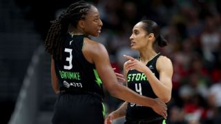 DRAFTED INTO THE WNBA a year apart -- Ogwumike No. 1 by the Los Angeles Sparks in 2012, Diggins No. 3 by the Tulsa Shock as part of the star-studded "Three to See" 2013 draft -- the two kept in touch and mused about teaming up as their careers blossomed. Diggins hit free agency in 2020 and requested a trade from her team, which had moved to Dallas and become the Wings. She was among the first star players to take advantage of the opportunities to change teams created by the WNBA collective bargaining agreement that Ogwumike was key to negotiating as president of the WNBPA. But the timing wasn't right for partnering. Ogwumike's Sparks, who had lost in the semifinals the year before, had a loaded roster that included All-Star point guard Chelsea Gray. Diggins instead landed with the Phoenix Mercury to kick off the WNBA's superteam era, joining Brittney Griner and Diana Taurasi. As both Diggins and Ogwumike approached free agency four years later, the situation was different. Diggins had already publicly split from the Mercury while sitting out the previous season on maternity leave. Ogwumike was ready for a change after watching Gray and Candace Parker depart Los Angeles in free agency, leaving the Sparks mired in the lottery her final three seasons. Diggins, who had considered Seattle a potential landing spot if Phoenix traded her in 2023 and built a relationship with Quinn, was the first to sign on while Ogwumike decided between the Storm and New York Liberty. Diggins spent that period "calling her every day and saying, 'I'm respecting your process,' but still calling her every single day," she said. "Everybody wants Nneka on their team. If she was free, 10 teams would still ask for Nneka to this day." Said Ogwumike: "I would say that Skylar was definitely more sure of where she wanted to go before I came here. I was still trying to fight the misconception that I was being disloyal because I had been at that franchise for so long. "Once I was able to leave that, I was really able to understand, 'OK, I have opportunities.' Not only did I have opportunities, but I had the chance to play with someone who I consider my sister, to play for people that have also been a part of my life growing into this basketball career." Playing together has only strengthened that bond. "You'll see Nneka on the plane holding my daughter and putting her to sleep," Diggins said. "No other woman in this world outside of my mother can say that. I trust her with my children. She's one of my very best friends in this world. You don't get a lot of those in this league. A lot of us cross paths, but to be able to connect and stay connected for that long, it's a rarity and something that I definitely don't take for granted." Now in very different stages of their lives than when they first met -- Diggins grimaces for effect when she acknowledges they've gone from friends as teenagers through their 20s and now into their 30s -- they continue to find their values overlap. "It's amazing when you can share the same discipline and competitive edge as somebody," Ogwumike said, "but then when you are on the team with them and it's someone that I consider like my sister as well, it almost feels like it activates something within me that I didn't know that I had or maybe that I was scared to tap into. "She brings out kind of the best in my potential."