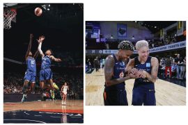 THE FIRST PRIDE initiative in the WNBA didn't happen until 2014. The first of its kind in American professional sports, the initiative highlighted the pressing need to serve LGBTQIA+ fans. The relationship between the WNBA and queerness among its fan base and players had been historically fraught. Early marketing campaigns highlighted femininity, whether it was authentic or not for the players being showcased, something that Sue Bird and Diana Taurasi have spoken about in recent years. In 2002, Lesbians for Liberty staged a kiss-in at a New York Liberty game to protest what they saw as lesbian erasure. There were Pride nights before 2014 and there were openly gay players before then too, the first of whom was Sue Wicks in 2002. Three-time MVP Sheryl Swoopes shared she was in a relationship with a woman in 2005 (though she has since identified differently), Seimone Augustus came out in 2012, Brittney Griner was openly gay even before she was picked No. 1 in the 2013 draft. But in the past 10 years superstars like Bird, Taurasi, Elena Delle Donne, Candace Parker, Chelsea Gray and many others have turned a spotlight on queer players in the league. Still, the WNBA fanbase has mostly been served conventionally feminine players, even among those who are part of the LGBTQIA+ community. Another word for marketability is desirability. The StudBudz's queer ethos flips assumptions about attractiveness to fans and sponsors alike. Masculine women, they say, are sexy, too. Williams has pointed out the missed opportunities before. When five WNBA players were highlighted in the Sports Illustrated Swimsuit Issue for the first time in 2022, the presentation of those five players was markedly feminine. "I love Sports Illustrated's attempt to be more inclusive and amplify women in the W," Williams wrote on X. "At the same time though it would of been raw to see a sleek lil sports bra & some shorts swaggin'. There's more than one way to look sexy, and I hope in the future we can tap into that." It's a sentiment echoed by coaches and other players, too. "When I was first in [the WNBA], there was so much attention on the league being successful," Reeve says. "That translated to societally pretty players doing things that society at large viewed as marketable. So, you look at the queer players at that time having to be something they weren't because they were told, 'Well if you don't, then this all may go away.' To see that we've evolved into a space where you can show up to work, be who you are and be celebrated for it, I think it's a special time."  Liberty guard Natasha Cloud cosigns. When asked about the appeal of masculine women, she smirks and flexes her arms. "My s--- gonna sell too," she says. "There's just as many women screaming about us. The investment should be there. I just feel like the W is dumb for not doin' it, 'cause why don't you want to be paid?" The StudBudz have attracted some brands on their own. They recently dyed their hair "period red," for a partnership with Kotex and managed to have fun with a topic that has traditionally been taboo. At one point, Williams is dead over Hiedeman's cramp-combatting technique: Laying down in the shower. "Who does that? I ain't never heard of that," she says. (Don't worry. The red was, shall we say, cyclical. They're back to pink now.) Williams sees their content as filling a need for some, and she understands that StudBudz, despite the claim on their T-shirts, might not be for everyone. "I think everybody get to kinda see how we vibe, how we talk to women. Because, one, where you ever really see that? You see all these datin' 'Love Island' and all these different things. But it's like you rarely see, like you said, gay interactions. Maybe that might not be what you want to see, and that's cool. You don't gotta watch that stream. Watch another one."