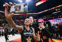 "YOU GUYS ARE AMAZING," WNBA commissioner Cathy Engelbert says to Williams and Hiedeman during WNBA All-Star Weekend in July. The StudBudz stream the entire weekend. Literally. And it's impossible to look away. There's a moment between Diggins and Hiedeman when Diggins comes over to say hi on the orange carpet. "What's a Stud Bud?" she jokes as she approaches them. Diggins and Hiedeman hug, while Williams gives a knowing side-eye because of, well, the crush heard round the internet. The StudBudz dance with Reeve, draping their arms over their coach's shoulders, bopping along with her to the music. Reeve throws her head back and laughs. Coach and players, from different generations, and all three members of the LGBTQIA+ community. They hang out with Clark. "Oh, we're live!" Clark yells as she daps up Williams on the stream. "We've got Caitlin Clark in the building!" Williams yells at the camera. Clark tells Williams and Hiedeman that she has been watching the stream at home. The moment starts a meme for the StudBudz who begin to joke that they will "call Caitlin Clark" whenever they need help with anything, like getting into an Indy club. Williams dances with Angel Reese, and I mean dances. And with "Knuck If You Buck" thumping in the background, the StudBudz dance with the WNBA commissioner. "They pulled the curtain back and showed that we're all friends off the court," Collier says. "We're competitors on the court, so that's why it feels so feisty. But off the court, we're all cool." All-Star Weekend launches the StudBudz into a different stratosphere. According to Google Trends, "StudBudz WNBA" search interest in the U.S. increased over 5,000% in July compared to June. During All-Star week, the query "StudBudz merch" increased over 5,000% in U.S. search interest compared to the previous week. None of it would have happened without basketball success as the foundation.