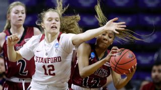 MANHATTAN, Kan. -- New Mexico State coach Mark Trakh knows West Coast women's basketball well. He was a very successful high school coach in California, going 354-45 in his career at Brea Olinda. Then he coached at Pepperdine from 1993 to 2004, and at Southern Cal from 2004 to 2009. During that time, he was watching Stanford's success or coaching against it. Saturday, far from the West Coast, here in the Heartland, Trakh nearly pulled off a major upset against the Cardinal. However, Stanford was able to rally in the fourth quarter and win 72-64. For the second day in a row, a No. 15 seed almost won an NCAA tournament game, something that has never happened before on the women's side. Friday, Long Beach State fell a point short at Oregon State. Saturday, it was New Mexico State's turn to scare a Pac-12 team. The Aggies led by three at the end of the first quarter, by seven at halftime, and by one after the third quarter. But Stanford's inside game finally took over in the final quarter, helping the Cardinal avoid the upset. Stanford is the only seed among the top 16 that is not hosting early-round games; the Pac-12 gymnastics championships were at Maples Pavilion on Saturday, which meant that No. 7 seed Kansas State got to host. New Mexico State was perfect in Western Athletic Conference play, won the WAC tournament title and had a 17-game winning streak entering NCAA tournament play. Player of the game: Her team didn't win, but New Mexico State's Brooke Salas did everything she could. The sophomore guard finished with 26 points, going 4-for-7 from 3-point range. Turning point: Guard Brittany McPhee converted a 3-point play with less than 7 minutes in the final quarter, giving Stanford a 58-54 lead. About a minute later, forward Erica McCall also got a 3-point play. Those six points gave Stanford some breathing room, putting them up 61-56, and seemed to change the momentum. How it was won: Stanford's big women came through when they needed it most. Forwards McCall and Alanna Smith combined for 28 points and 23 rebounds. And guard Karlie Samuelson also made some very big shots, going 5-for-9 from 3-point range.  X factor: As in the Pac-12 tournament title game victory over Oregon State, Stanford sophomore Smith was a lifesaver. She came off the bench for 19 points and 11 rebounds, shooting 8-for-12 from the field. In the Pac-12 final, she had 18 points off the bench. Stat of the game: New Mexico State shot 56 percent in the first half but finished the game at 42.3 percent as Stanford's defense became more effective. The Aggies shot just 18.8 percent (3-for-16) in the third quarter. What's next: Stanford faces the winner of No. 7 Kansas State vs. No. 10 Drake; it will be a true road game for the Cardinal if the Wildcats win. New Mexico finishes the season 24-7.