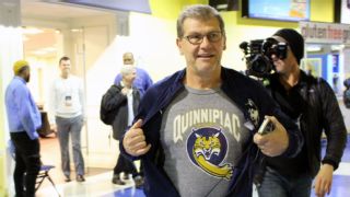 BRIDGEPORT, Conn. -- Count Geno Auriemma as a big supporter of Connecticut's other Sweet 16 team, surprising Quinnipiac and coach Tricia Fabbri. Auriemma pulled open his UConn warmup jacket to reveal a Quinnipiac shirt during a press conference Friday. "I wouldn't want to be in their bracket. They remind me of our '91 team," Auriemma said. "I watched them play ... and with 8 minutes left in the game I said I think they're going to win. Everyone in the place was going nuts. I thought `Oh my god, this is 1991 replaying itself."  Auriemma guided UConn to the Final Four for the first time in 1991. The Hall of Fame coach was proud that two teams from Connecticut -- located about 56 miles apart -- reached the Sweet 16. It's the first time the Huskies have company from the state in the regional semifinals. The news of Auriemma's thoughtful choice in attire quickly reached the Bobcats across the country in Northern California, where they play top-seeded South Carolina on Saturday in the Stockton Regional. "It's awesome, just the support we've had in general, and then especially from him and his team," Quinnipiac guard Adily Martucci said. "He's a great coach and the spotlight is always on him. A lot of people saw that." Fabbri became a bit emotional when asked about Auriemma's support. "Well, first of all, Geno has been such a mentor for me going way back," she said. "He helped me in this process, get the job at Quinnipiac a long, long time ago, 22 years ago. But really just a gold standard, a great guy, and then he was so excited. He reached out as soon as we won, and so complimentary of what we were able to accomplish over the weekend. "The fact that he is wearing our shirt in support of our team in this tournament, at this time, just so thankful. And very grateful for his support and UConn women's basketball's support of Quinnipiac women's basketball and the two teams in Connecticut representing women's basketball in the Sweet 16." South Carolina's players acknowledged they hadn't heard of Quinnipiac -- pronounced KWIHN'-ih-pee-ak -- until a couple of days ago. "I don't want to pronounce it. I don't want to mess it up," A'ja Wilson said. "I just know that they are the Bobcats from Connecticut."