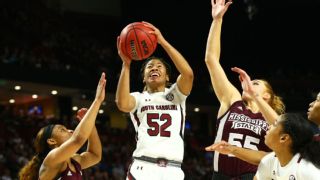 But here's the thing about a one-time simulation: It's just as one-and-done as the real thing. Bethune-Cookman might have only a 1-in-100 chance to beat Louisville, but if that one simulation says it happened, then that is the path this bracket follows. The computers can give us probabilities, odds and this entire simulation, but what they can't do is provide the narrative that is such a part of March. That is where the rest of the fun starts, and where we get to take some liberties with the details as we advance through the bracket. FIRST ROUNDGreenville Region No. 1 South Carolina over No. 16 Jackson State The momentum from a near-perfect season and dominant run through the SEC tournament is not slowed at all by the nearly two-week break for the Gamecocks. They win by 50. No. 9 Florida Gulf Coast over No. 8 Michigan The Eagles do two things better than any team in the country: make 3-pointers and protect the ball. Michigan feels the impact of both. With senior Davion Wingate leading the way, FGCU makes 14 3-pointers and the Wolverines' length doesn't help create any turnovers as the Eagles pull away late for a double-digit minor upset. No. 12 Drexel over No. 5 Missouri State This is the first truly big upset. Missouri State was a trendy pick to reach the Sweet 16 for a second straight year, but the Lady Bears were done in by another mid-major. The Dragons play at the slowest pace of any team in the country, and Missouri State was out of sync for nearly the entire game. A late rally falls short. Drexel moves on. No. 4 Oregon State over No. 13 Texas A&M-Corpus Christi Getting out of the Pac-12 seems liberating for the Beavers, who play with a looseness that hasn't been seen since a pair of 90-point performances in November. Oregon State doesn't quite hit 90 here but is never challenged on its way to the second round. No. 6 South Dakota over No. 11 Rice Another mid-major clash in the Greenville region also pits two of the nation's most underappreciated seniors against each other. South Dakota's Ciara Duffy, espnW's mid-major Player of the Year, outduels Erica Ogwumike, who finishes her career with a double-double, down the stretch, giving the Coyotes their first NCAA tournament win. No. 3 UCLA over No. 14 Montana State The Bruins look rusty, and for 30 minutes, it looks like the Big Sky-champion Bobcats might pull off the surprise of the tournament. Then, a concerted effort is made to get Michaela Onyenwere the ball, and the UCLA junior star dominates late, helping the Bruins survive. No. 7 Arkansas over No. 10 Marquette Back in November, most thought Arkansas would be a higher seed and Marquette would be in the WNIT at best. This game played out with those expectations in mind. The Razorbacks hit the Golden Eagles with an offensive barrage and run away with an easy win. No. 2 NC State over No. 15 Campbell The 3-point shooting that is so vital to the Wolfpack's success was missing in action again, but with a huge size advantage over the Big South champs, NC State dominates inside behind the play of All-American Elissa Cunane. Fort Wayne Region No. 1 Maryland over No. 16 Samford Since last losing on Jan. 9, the Terrapins didn't have a game closer than nine points the rest of the season. This one also goes into the blowout category, as six Maryland players score in double figures and the Terps go over 100 for the sixth time. No. 9 Iowa State over No. 8 Virginia Tech In one of the most tightly contested games of the opening round, the Cyclones and Hokies give the College Park fans the excitement they didn't get in Maryland's rout. Iowa State senior Adriana Camber hits a 3-pointer at the buzzer for her only field goal of the game, giving the Cyclones a one-point win. No. 5 Texas A&M over No. 12 Dayton The Flyers slow the pace and frustrate the Aggies for a while, but ultimately Dayton can't handle N'dea Jones and Ciera Johnson inside, and Texas A&M wins an NCAA tournament game for the fifth consecutive year. No. 4 DePaul over No. 13 Rider The Broncs' outstanding season and first NCAA tournament appearance is over quickly against the offensive onslaught of the nation's second-highest-scoring team. No. 6 Kentucky over No. 11 Old Dominion Both teams take a defense-first philosophy, and the game is low-scoring and physical. The difference is the Wildcats have Rhyne Howard, and each time they need a basket, she delivers. Eventually, the Monarchs just don't have enough offense to stay in the game. No. 14 Southeast Missouri over No. 3 Arizona Southeast Missouri saw the Drexel upset and went even bigger. The Pac-12 loses its fourth-best team, as Arizona's usually stingy defense can't stop Carrie Shephard and Tesia Thompson. Arizona's Aari McDonald expends so much energy bouncing off screens and chasing them, she doesn't have enough in the tank for the late charge the Wildcats need. Arizona's ascent will have to wait another year. No. 7 TCU over No. 10 Purdue Like Arizona, TCU is a program on the rise. The Horned Frogs didn't have as much success in the regular season as the Wildcats but did something the Wildcats could not -- get to the second round in the program's first trip to the NCAA tournament since 2010. No. 2 Louisville over No. 15 Bethune-Cookman Bethune-Cookman's second trip to the NCAA tournament goes better than its first. But only slightly. After losing to Notre Dame by 42 last year, the Wildcats fall to the Cardinals by 35. Louisville coach Jeff Walz is able to rest his regulars for the entire fourth quarter. Dallas Region No. 1 Baylor over No. 16 UMKC In the previous five NCAA tournaments, the Lady Bears beat their first-round opponents by an average of 53.4 points. That number gets bigger after a 60-point win over the Kangaroos. No. 8 Drake over No. 9 LSU Drake greats Becca Hittner and Sara Rhine were just not ready to see their careers end. They each score 20 points, and LSU doesn't have enough firepower to keep up. No. 12 IUPUI over No. 5 Florida State We have reached the point wher