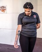 WEARING A CRIMSON button-down shirt and skinny jeans, Walker fills water bottles and spreads warm-ups across the chairs on the Bethune-Cookman bench.