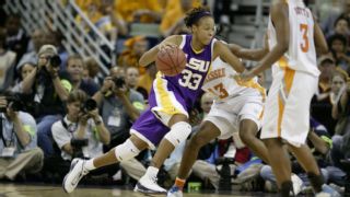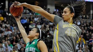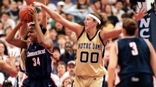 00. Ruth Riley, Notre Dame (1997-2001) See also: *Naz Hillmon, Michigan 2018-present; Shawntinice Polk, Arizona 2002-05; Michelle Snow, Tennessee (1998-2002); Tracy Reid, North Carolina (1994-98); La'Keshia Frett, Georgia (1993-97); Sylvia Crawley, North Carolina (1990-94). It's not really a widely used number, but its biggest success is with post players. Coach Muffet McGraw got lost in the cornfields trying to find Riley's tiny town in Indiana during recruiting. But the 6-foot-5 center found her way to South Bend, Indiana, leading the Irish to their first NCAA title in 2001 as the Final Four's most outstanding player. She was WNBA Finals MVP in 2003 for Detroit and won Olympic gold in 2004. Crawley, part of the Tar Heels' 1994 NCAA title team, and Snow also were centers, and both could dunk. Polk, another center, died from a blood clot at age 22 a few months before her senior season. Reid, a wing, helped North Carolina win three ACC tournament titles and was the WNBA's first Rookie of the Year in 1998. Hillmon, a junior forward, is the current Big Ten player of the year and is Michigan's first Associated Press All-American. Her mother, Na'Sheema Hillmon, wore No. 4 at Vanderbilt in the 1990s.  0. Odyssey Sims, Baylor (2010-2014) See also: *Rennia Davis, Tennessee 2017-21; Satou Sabally, Oregon (2017-20); Mikayla Pivec, Oregon State (2016-20); Chantel Osahor, Washington (2013-17); Olympia Scott, Stanford (1994-98). Zero has been used more in recent years. It fit well for players such as Sims, Scott and Osahor whose first or last names started with the letter "O," and for Sabally and Pivec, whose schools did. Sims, a guard now with the Atlanta Dream, combined with center Brittney Griner to help lead Baylor to a 40-0 championship season in 2012. As a senior in 2014, Sims averaged 28.5 PPG. Sabally helped Oregon to its first Women's Final Four in 2019, and was the No. 2 pick by Dallas in the 2020 WNBA draft. Davis is expected to be a WNBA first-round draft pick this year. 1. Crystal Langhorne, Maryland (2004-08) See also: *Dana Evans, Louisville 2017-21; Tori Jankoska, Michigan State (2013-17); Alexis Peterson, Syracuse (2013-17); Rachel Banham, Minnesota (2011-16); Elizabeth Williams, Duke (2011-15); A'dia Mathies, Kentucky (2009-13); Shavonte Zellous, Pittsburgh (2005-09); Katie Gearlds, Purdue (2003-07); Mistie Bass, Duke (2002-06). Langhorne, a forward/center, is second to Alyssa Thomas at Maryland in career points (2,247) and rebounds (1,229) and is first in career field goal percentage (65.2). She led Maryland in scoring (17.2) and rebounding (8.6) in its 2006 national championship season. After a 13-season WNBA career, winning two titles with the Seattle Storm, she recently retired. Banham (3,093) is one of 13 women in the NCAA era to score at least 3,000 points, and the guard's 60-point performance in 2016 is tied with Long Beach State's Cindy Brown (1987) for the Division I single-game scoring record. Evans is the reigning two-time ACC player of the year and is expected to be a first-round WNBA draft pick. 2. Jayne Appel, Stanford (2006-10) See also: *Aari McDonald, Arizona (2017-21); Morgan William, Mississippi State (2014-18); Louella Tomlinson, St. Mary's (2007-11); Erlana Larkins, North Carolina (2003-07); Tamara James, Miami (2002-06); Temeka Johnson, LSU (2001-05). From the 6-4 center Appel to the 5-2 guard William, the deuces have had some big NCAA tournament moments. Appel led the Cardinal to the Final Four three times, and her 46 points in the 2009 Elite Eight is Stanford's single-game high. William hit the overtime jump shot that beat UConn in the 2017 national semifinals, ending the Huskies' 111-game winning streak, and also helped Mississippi State reach the 2018 NCAA final. She's the Bulldogs' career leader in free throw percentage (84.7). Larkins went to the 2006 and '07 Final Fours with UNC. Fellow forward Tomlinson (663) is second in Division I history to Baylor's Brittney Griner in total blocked shots, and leads in blocks per game career average (5.3). McDonald is the current Pac-12 player of the year and is expected to be a WNBA first-round draft pick.  3. Diana Taurasi, UConn (2000-04) See also: Chennedy Carter, Texas A&M (2017-20); Sophie Cunningham, Missouri (2015-19); Jordin Canada, UCLA (2014-18); Kelsey Mitchell, Ohio State (2014-18); Courtney Paris, Oklahoma (2005-09); Candace Parker, Tennessee (2004-08); Nicole Ohlde, Kansas State (2000-04); Marie Ferdinand, LSU (1997-01); Shalonda Enis, Alabama (1995-97); Michelle Marciniak, Tennessee (1993-96); Sheila Ethridge, Louisiana Tech (1987-91); Andrea Congreaves, Mercer (1989-93). Now we're talking about the big leagues of numbers, with two superstars who were each twice named Final Four most outstanding player and are still playing in the WNBA. UConn coach Geno Auriemma thought Taurasi, a guard, could be the Babe Ruth of women's hoops, thus she wore No. 3 and won three NCAA championships. With the Phoenix Mercury, she has three WNBA titles and four Olympic gold medals. Parker, a forward/center who is now with the Chicago Sky, opted for No. 3 as an Allen Iverson fan, and led Tennessee to the 2007 and '08 national championships. She won the 2016 WNBA title with Los Angeles and has two Olympic golds. Paris, a center, is the Division I leader in total rebounds with 2,034. Mitchell, a guard with the Indiana Fever, is second in NCAA career points (3,402). 4. Skylar Diggins, Notre Dame (2009-13) See also: Moriah Jefferson, UConn (2012-16); Tayler Hill, Ohio State (2009-13); Candice Dupree, Temple (2002-06); Kim Smith, Utah (2002-06); Janel McCarville, Minnesota (2001-05); Stacy Frese, Iowa State (1996-2000); Rosemary Kosiorek, West Virginia (1989-92); Penny Toler, Long Beach State (1986-89); Jasmina Perazic, Maryland (1979-83). The Irish won a national championship in 2001, but hometown hero Diggins of South Bend really brought a swagger and confidence -- and three Final Four appearances -- that further elevated Notr
