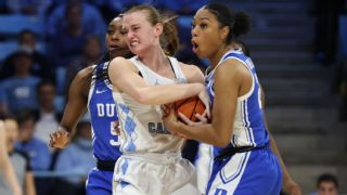 (2) Duke vs. (3) North Carolina Friday, 2:30 p.m. ET, ESPN Why North Carolina will win: The first time these teams met (a grueling 53-46 overtime North Carolina win) Alyssa Ustby was the best player on the court, notching one of her nine double-doubles on the season. She missed the next clash (a comfortable Duke win) with a knee injury. Ustby has played well since her return, except in the ACC tournament semifinals against NC State -- not coincidentally, the Tar Heels' only loss since she returned to the lineup. Why Duke will win: How do the Blue Devils win any game? With their defense. Their recent offensive strides make them an intriguing Final Four pick, but their success is fundamentally derived from defense. They allowed 70 points in only six games this season -- all against NCAA tournament teams -- and were 2-4 in that stretch. They certainly need to score, as evidenced by that January meeting with UNC when they allowed only 53 points in 45 minutes and still lost. But defense is the one constant in Durham since Kara Lawson took over, and this is the best Duke team she has had at that end. X factor: Reigan Richardson emerged as a star during Duke's run to the Sweet 16 last year. When she scored 35 points in an overtime win over Oklahoma right before Thanksgiving, it seemed to support that status. But she has mostly scuffled since. Last year's top scorer for Duke, Richardson now ranks fourth on the team. Her 13 points in the second round against Oregon was her highest output in March. A return to form would be a huge boost to extending the Blue Devils' season one more week. -- Charlie Creme Picks to win Andrea Adelson: Duke 59, UNC 55