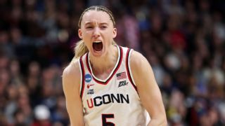 SPOKANE, Wash. -- At halftime of UConn's Sweet 16 matchup against Oklahoma, Huskies coach Geno Auriemma was displeased with star player Paige Bueckers, who had a team-high 11 points but made some defensive miscues in the second period that helped the Sooners take a 36-32 lead into the break. Auriemma told Bueckers that once her defensive mentality returned, she could start going about winning the game for them -- and she did just that. Bueckers exploded for 29 second-half points, single-handedly outscoring the Sooners in the final 20 minutes and finishing with a career-high 40 to lead the No. 2 seed Huskies to an 82-59 win. UConn will play in its 29th Elite Eight all time, and its 18th in the past 19 seasons, Monday against 1-seed USC, which beat 5-seed Kansas State later Saturday without injured superstar JuJu Watkins. Bueckers, the presumptive No. 1 draft pick in next month's WNBA draft, became the first UConn player ever to score 40 points in an NCAA tournament game, and the 29-point half was also a first. She did so with her trademark efficient shooting, finishing 16-for-27 from the floor. The effort elicited a standing ovation from the crowd at Spokane Arena as she checked out of the game with 3:08 remaining. "Paige was spectacular," Auriemma said. "That was as good a game as I've seen her play the whole time she's been here, at the most important time." Aside from a scoreless second quarter, Oklahoma had no answer for Bueckers, who devastated them in the midrange (8-for-14) and beyond the arc (6-for-8). In a particularly sensational stretch to start the fourth quarter, she scored 19 straight points as the Huskies blew open the game, hitting 8 of 9 shots, including 3 of 4 from 3-point range. In that same span, the Sooners managed only five points, all on free throws.  "When it starts happening in a game, in the back of your mind, you go, 'Here it goes,'" Auriemma said. "And you know that unless the other team does something, it's just going to keep piling it on." After tying her career high in scoring with 34 points in Monday's second-round win over South Dakota State, Bueckers has recorded 74 points across the past two games, the most in a two-game span in program history. The urgency never has been greater for her in this last effort to clinch a national title before she leaves for the WNBA. "Little by little it's dawned on her, I think, that there is no next year," Auriemma said. "There is no 'I can get this anytime I want.' You're going to have to get it now or it won't be available anymore." Added Bueckers: "Honestly, we just wanted to keep our season going as long as possible. We all love playing together, we love playing here. We just love this program and everything it means." Bueckers' onslaught helped flip on its head a game that Oklahoma unexpectedly led at halftime. The Sooners found a groove in a second quarter in which they outscored UConn 24-15, featuring 13 points from guard Payton Verhulst -- some of which were scored with Bueckers guarding her. It wasn't simply Bueckers' 29 second-half points that made the difference; UConn's offense was fueled by its defense, which held Oklahoma to 23 points in the second half. The Huskies made the turnover-prone Sooners play to that reputation. Oklahoma had 23 turnovers -- one more than its 22 made field goals -- and 18 of those came from UConn steals. Even when the Sooners did manage to get shots off, Verhulst put up just three points outside of that high-scoring second frame, while star center Raegan Beers was limited to 10 points on 3-for-11 shooting. After the game, a whiteboard in the UConn locker room read "59 points, season low!" to celebrate the Huskies' defensive effort against the typically high-octane Sooners. "I think we got a little bit lazy or a little bit distracted [in the second quarter], and that happens when you're not making shots," Auriemma said. "The second half ... our team defense was fantastic, it really was." Added Bueckers: "They had a great first half, and we didn't make a lot of shots, but we dug down defensively, stuck to our defense, and I think that's what we want to just hang our hat on, is defense winning games." The Huskies' 23-point margin of victory is the fourth-largest by a team in NCAA tournament history after trailing at the half, and second-largest in the Sweet 16 or later. But Auriemma still saw it less as a single-player takeover and more as a team accomplishment. UConn's guards were critical in making it difficult for Oklahoma to get the ball into the paint, with four each coming away with three steals. Freshmen Sarah Strong and Jana El Alfy combined for 20 boards, and sophomore Ashlynn Shade brought 12 points off the bench, including eight in the first half when scoring was tough to come by for the Huskies. "It's supposed to be like that, right?" Auriemma said. "It's supposed to be a collaboration. Some people can do big things and can do a lot of things. That's Paige's role on this team, to do big things. We have other players that their role is to do smaller things, and if they all do their small things really, really well, we add them up to the big things that Paige is going to do, and we end up with a great win."