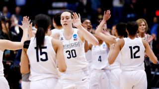 ALBANY, N.Y. -- Connecticut is different than other teams. The Huskies are better. In the first three games of this NCAA tournament, they were 143 points better. So when something unthinkable, like a one-point deficit, confronts this squad, this is considered a major obstacle. "What normal teams face every year, a lot, if it happens once at Connecticut it's adversity," UConn coach Geno Auriemma said. In Monday night's NCAA regional final against a fun-loving, entertaining Dayton squad, UConn showed the grit it needs to deal with its unique form or hardship, shutting down the Flyers in the second half for a 91-70 victory.  The win sends UConn to Tampa Bay for its eighth straight Final Four and keeps the team in the driver's seat for a third straight national championship. But it also taught the 36-1 Huskies, who haven't lost since the second game of the year and hadn't trailed at half since 2013, a lesson about themselves: They can handle a little pressure. "The demeanor of our team wasn't really that different when we've been in the locker room up 21," Auriemma said. "There was a look on their faces that was really more of a, 'We can't wait to go out there and take care of this.' There was no, 'Omigod what happened?'" The Huskies could have been forgiven for feeling at least a bit of OMG. Dayton played a sensational first half, running and firing shots from all over the court, hitting seven of 10 3-pointers and making UConn defenders look like castoffs from an NBA All-Star game. The offensive outburst in the 44-43 first half left the 7,686 fans in the Times Union Center thoroughly enjoying the show. They weren't alone. "I had to calm myself down," said Dayton's coach, Jim Jabir, whose seventh-seeded Flyers upset No. 2 seed Kentucky and third-seeded Louisville to set up their date with UConn. Dayton's Ally Malott would hit a trey, and UConn's Kaleena Mosqueda-Lewis, who wound up with a game-high 27 points and the NCAA Division I career record for 3-pointers with 393, would match her. The Flyers' Kelley Austria would snake through the lane for a bucket, and seconds later, UConn's Breanna Stewart or Morgan Tuck would sneak along the baseline for two. Back and forth it went for a breathtaking 20 minutes. "We weren't afraid of them," said Flyer senior guard Andrea Hoover, who along with Malott was named to the all-regional team. And the Flyers, who'd talked before the game about not worrying about the name on the UConn jersey, were doing just that. At Dayton's pace, "The game is played so fast, you don't notice who you're playing," Hoover said.  But in the second half, UConn made them notice. The Huskies quit racing. They used their height. They slowly suffocated the Flyers. They adjusted. "It was important to make sure we had a change of pace," point guard Moriah Jefferson said. "There were times where we felt like it was going back and forth too much, and we needed to take a break and get a good easy shot, and try to knock that in." Jefferson, one of the fastest players in the college game, was at home with the pace of the first half, but in the second, she often walked the ball up the court, directing it inside to the 6-foot-4 Stewart and the 6-2 Tuck, who each finished with 23 points. "Going 100 miles an hour wasn't what we needed tonight," Jefferson said. "Tuck and Stewie did a good job of posting up, so we found them and they put in the layups for us." The 5-7 junior admitted she might not have been comfortable slowing things down early in her UConn career, but she, too, has adjusted, maturing into one of UConn's top offensive threats in the second half of the season. Before Christmas, Jefferson shot 43 percent from the field; she has hit 65 percent of her shots since. She attributes part of the evolution to a talk with UConn coaches around the Christmas break, where they broke down video of Spurs guard Tony Parker, and told her to emulate his knack for knowing when to go to the basket and when to dish. Monday, she handed out six assists, including the pass that set up Mosqueda-Lewis' record-setting trey. While their offense slowed Dayton, the Huskies' D stopped the Flyers cold. Neither Malott (14 points) nor Austria (11) scored in the second half. UConn began switching every ball screen Dayton set, and defenders such as Tuck aggressively face-guarded Dayton's shooters. "It was harder to get open," Malott said. Meanwhile, Auriemma said, the Huskies coaching staff made a simple request. "We would appreciate it if just one of you put your hands up," he said. "Just one." More than a few Huskies did, and the Flyers as a team shot just 37 percent in the second half after nailing 51 percent from the field in the first. The Flyers fell to earth, but not before revealing UConn is indeed a collection of college students. "We need to be treated like mortals," Auriemma said, "and it's OK." It was OK with his players, too. Jefferson liked being tested, if only for 20 minutes. This wasn't pressure. "It was fun."