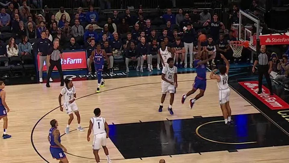 Cam Boozer's dart sets up an Isaiah Evans jam in Duke's win over Kansas