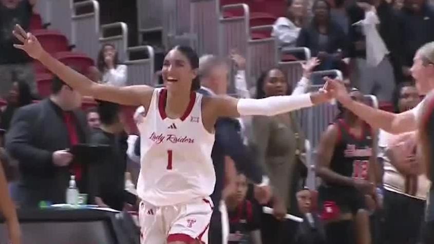 Texas Tech's Jalynn Bristow beats the buzzer from beyond half court